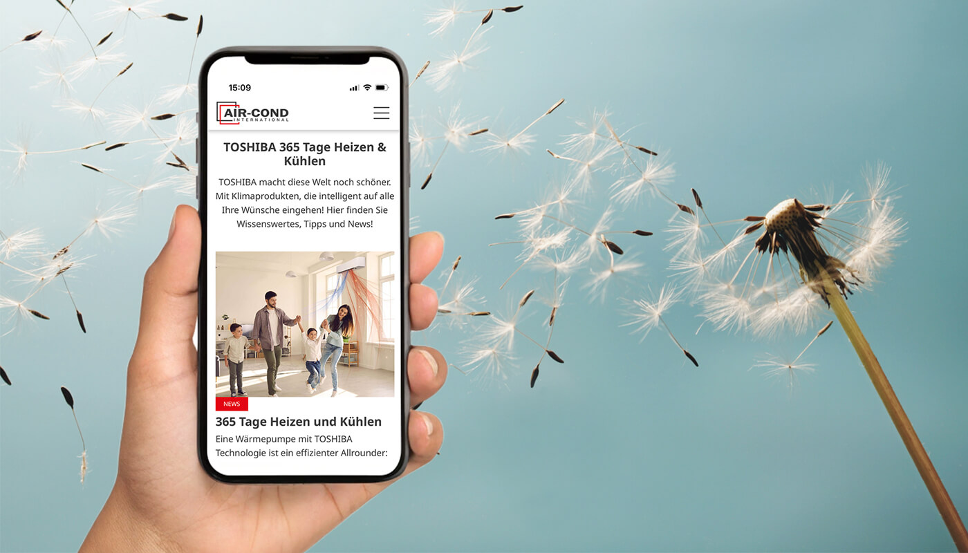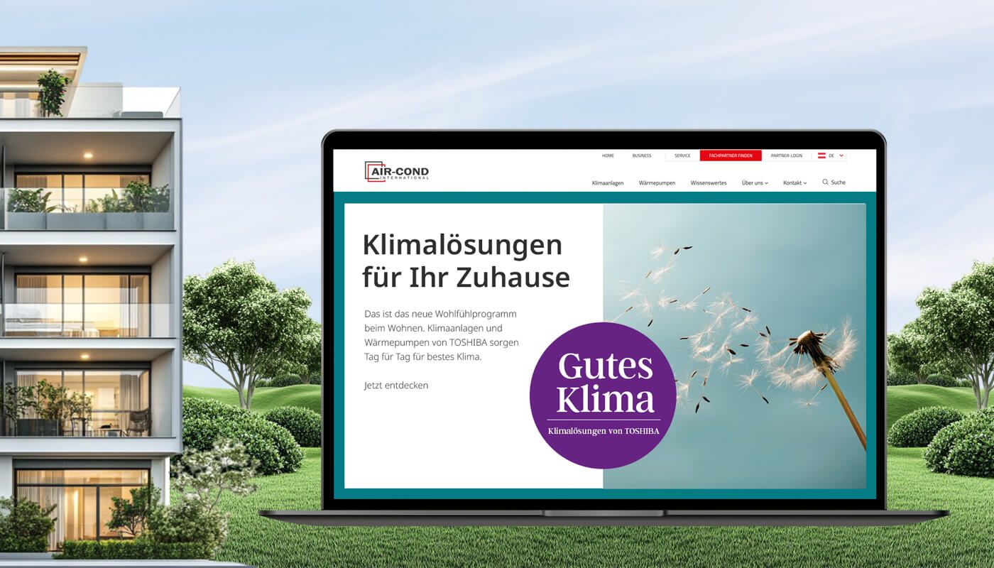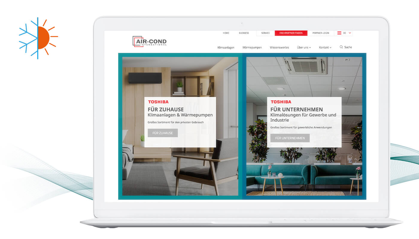 Die Website von AIR-COND International, der Generalvertretung von Toshiba Airconditioning in Österreich, Zentral- und Osteuropa wurde von uns mit einem klaren Ziel gestaltet und umgesetzt: Privat- und Business-User gleichermaßen zu fokussieren. Entsprechend haben wir die UX durch eine intuitive Nutzerführung konsequent auf beide Zielgruppen ausgerichtet.