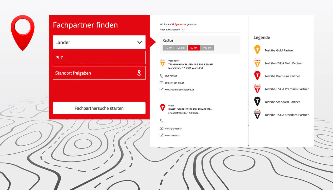Besonderes Augenmerk galt unterstützenden, interaktiven Elementen, die den Nutzerinnen und Nutzern den Weg zur passenden Produktlösung vereinfachen. Ein Heizlastenrechner unterstützt z.B. bei der Vorauswahl geeigneter Klimasysteme und erleichtert die Kaufentscheidung. Der Fachpartner-Finder ermöglicht mit wenigen Klicks die Suche nach qualifizierten Installationsbetrieben in der Nähe.